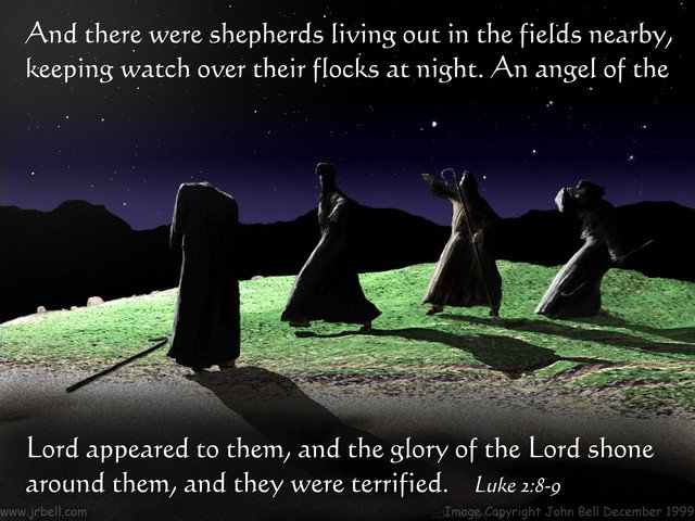 “In that region, there were shepherds living in the fields, keeping watch over their flock by night. Then an angel of the Lord stood before them, and the glory of the Lord shone around them, and they were terrified.” (Luke 2: 8-9)